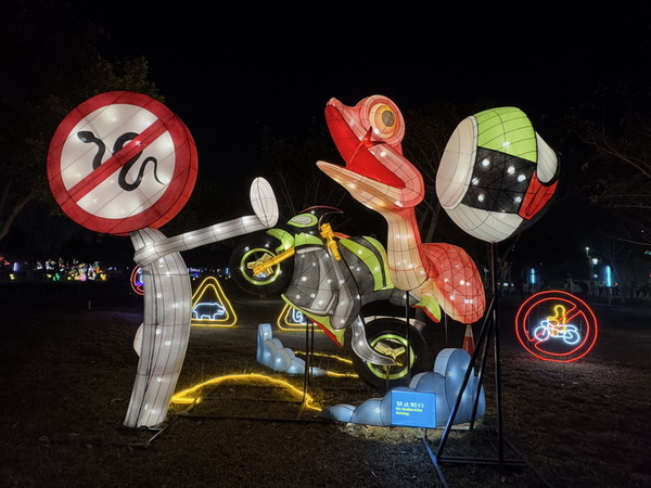 有饒蛇歌手、禁止蛇行、貪心不足蛇吞象、畫蛇添足、蛇麼龍賀等等,搞笑可愛的燈組透過輕鬆逗趣的諧音梗,讓人獲得意想不到的樂趣。