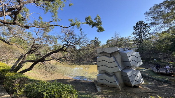 角板山行館前的大型裝置藝術—人形狐狸,是許多人最愛拍照的作品之一,其結合「狐狸」與「人型」的奇幻造型,帶著一點神秘的山林精靈感,讓公園多了許多趣味。
