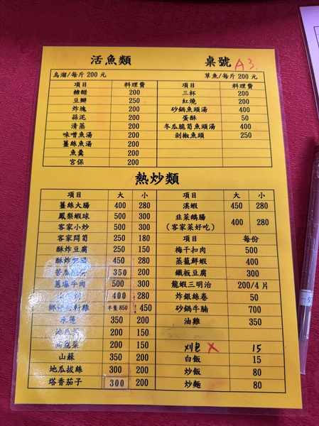 菜單,主打的就是活魚多吃,烏溜之類的活魚現撈現煮,餐點部分可以單點,也有組合套餐,除了土雞外價格都算平價。