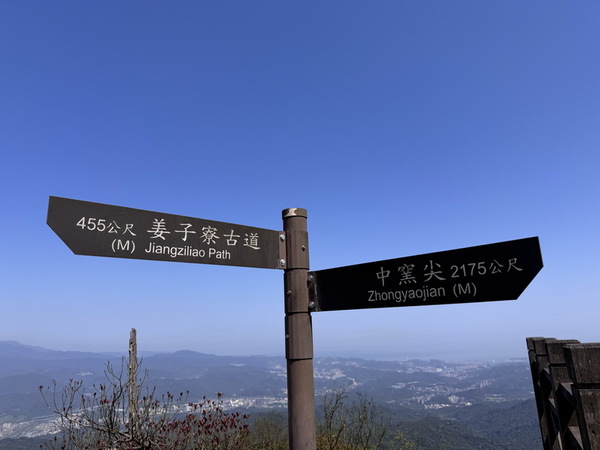 其中兩個觀景台旁的小徑標示了前往姜子寮古道及中窯尖。