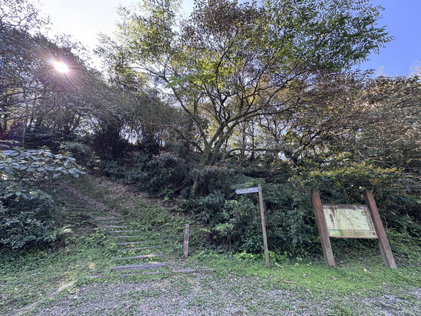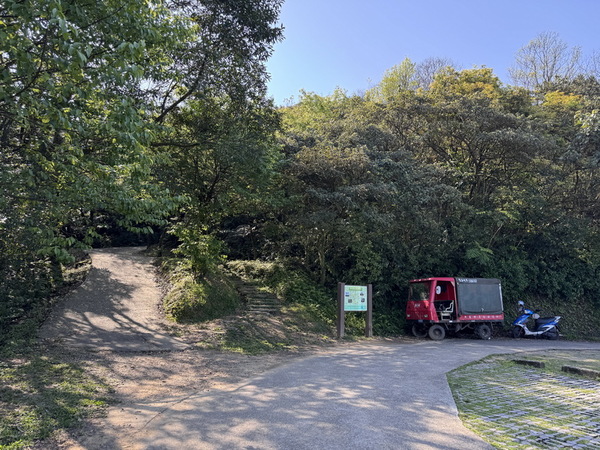 再次來到上方的停車場,一旁的登山口才是步道真正的起點,有水泥路(左)及階梯步道(右),最後會回到同一條路。