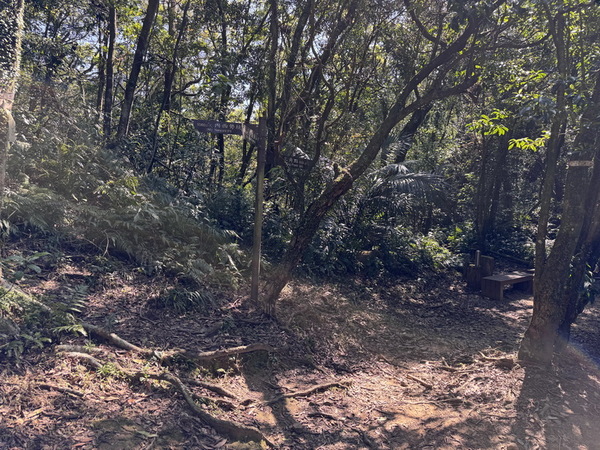 叉路前方有一處較大的空地,有木椅可供休息。
