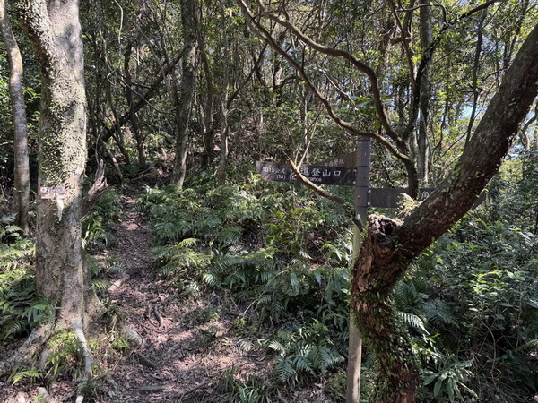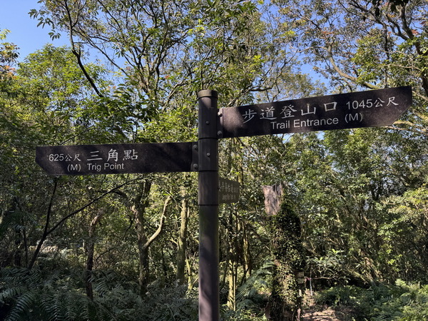 第三個叉路口,非常明顯,往右是接姜子寮古道,距三角點只剩625公尺。