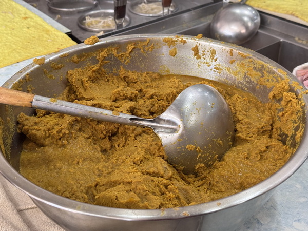 店內的料理區,可看到一大盆店家自製的咖哩醬,據說是從日據時代的日本人學,後來有稍微改良一下,比較符合台灣人的口感。