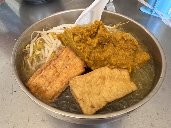油豆腐及豆芽菜也吸附了滿滿的湯汁,沾附了咖哩味道更加美味。