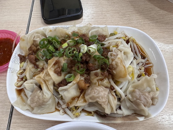 乾餛飩,餛飩撒上蔥花拌入肉燥滷汁,味道也不錯。