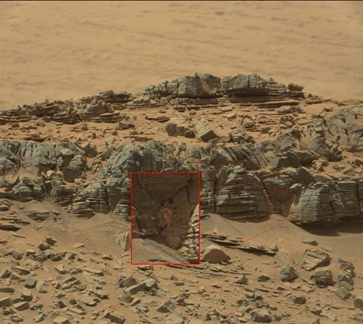媒體消息,美國太空總署(NASA)火星探測車好奇號日前傳回7月拍攝回的火星表面照片,而照片上出現類似螃蟹的踪跡,在網絡上掀起熱烈討論。 網友們在火星岩石上發現岩壁上有一處色澤較淺的物體,把照片放大一看發現具有好幾個腳,形體和螃蟹十分相像,但也有人認為他是蜘蛛,再次掀起大家對火星人有生物的討論,而這也不是好奇號首次拍下可疑圖像,早先它拍攝到一塊疑似骸骨的物體,以及類似金字塔的岩石。