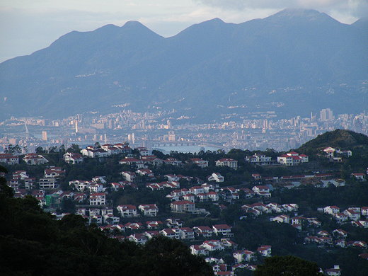 獅仔頭山往新店捷運站方向遠眺 101 九五峰 分踞左右