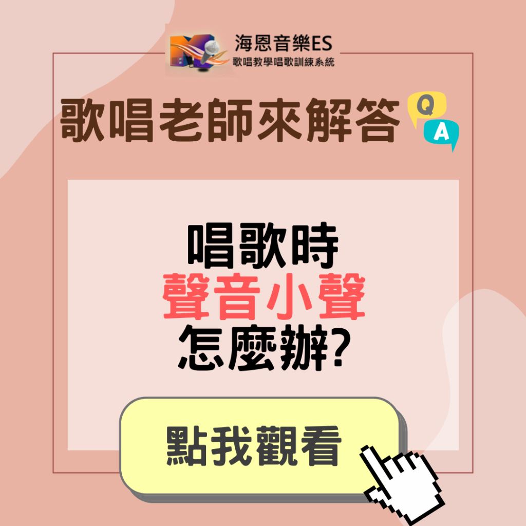 A:唱歌小聲的時候會造成許多情況的不確定性,例如聽不出哪裡唱不好、哪裡有問題,或是聲音會突然變大聲、出現破音的情況等等,這時候許多同學會選擇將伴奏的音樂調大聲,但伴奏的聲音調大會使我們的聲音聽起來很虛。