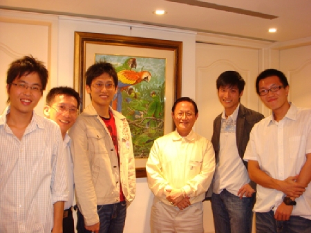 參事親自熱情開門迎接我們到訪。而在門打開的那一剎那,就已經有陣陣優美的拉丁風情旋律從屋裡飄出。進了屋內,淺褐的木頭地板、雅致整潔的裝潢、從世界角落來的異國擺飾以及柔和暖色燈光的點綴,馬上予人舒適愜意的感覺。參事的夫人也親切來迎門,不過看到踏進門的清一色是男生,雖先說了「哇!都是帥哥」的讚美話,卻也略帶玩笑的抱怨「怎麼沒有女生呢?」、「有女生才有話題,可以balance一下嘛!」。的確,當天美中不足的是,我們國合幫中的兩位女孩子都恰巧有事無法出席,造成了性別比例上六比一的極不平衡,這裡要再跟參事的老婆說抱歉囉!