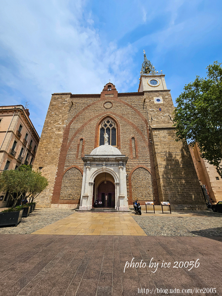 #14.聖讓-巴蒂斯特大教堂(Basilique-Cathédrale de Saint-Jean-Baptiste de Perpignan)外觀一隅......這座教堂又被稱為佩皮尼昂主教座堂,坐落在老城區的中心,大教堂始建於1324年,由馬略卡國王桑喬一世下令建造,於1509年竣工。大教堂帶有濃厚的加泰隆尼亞哥德式建築風格,其白色的門廊建於17世紀,鍛鐵鐘樓則建於18世紀。