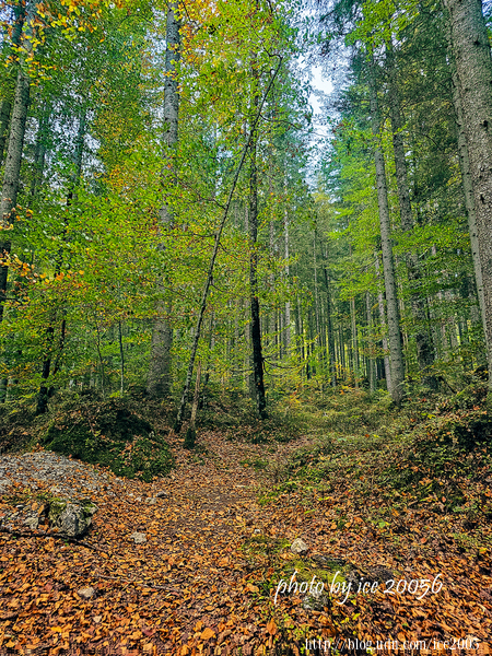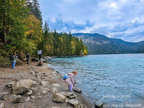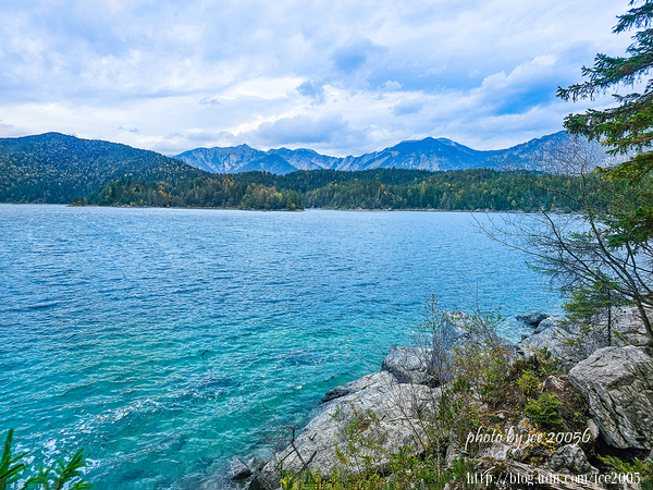 #2.艾比湖(Eibsee)一隅......艾比湖又譯艾布湖位於楚格峰(Zugspitze)北側的山腳下,屬於高山湖泊,如果搭乘纜車應該可以清楚俯瞰湖景。湖畔設有一條名為Eibsee Rundweg的環形步道,這天的天氣有點陰沉,因此無法體驗所謂的「湖光山色」。