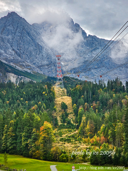 #29.纜車道一隅......霧消失了,可以清楚地看到位於楚格峰頂上的纜車站。