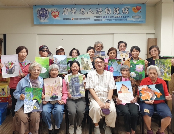 (文/據點主任 王淑玄) 「贏在據點,銀向未來」113年全國社區照顧關懷據點高峰論壇,於8月13日假台灣中油大樓國光廳舉辦,由臺北市社會局、中華金點社區促進聯盟、弘道老人基金會合作辦理,邀集全國社區據點夥伴一同參與,互相交流,達成落實在地安老的願景。 據點高峰論壇以「服務創新,永續發展」為主軸,分為三大主題「自我突破」、「社會參與」及「科技運用」。活動同時邀請台北市13處社區照顧關懷據點擺設攤位,不僅展示據點長輩的文創作品及手作餐點,也提供有趣的VR互動體驗。 環宇萬華老人據點受邀請設攤,主題為「透過藝術活動服務,達到創意老化目的」,擺設作品包含生命故事手作書、水彩畫及手作歷程檔案。 展示過程中,許多民眾對「生命故事手作書」感到很有興趣,認為長者能留下屬自己的生命故事書,非常有意義。張阿姨看到她的作品被展示在桌上,開心說:「這些內容是我們那個年代的生命經驗與美好記憶,能夠分享給現場民眾,讓我覺得很有成就感!」 此外,參觀民眾對於長者的水彩作品,讚不絕口,一位在中油大樓上班的大叔,利用午休時間參觀,看到長者的畫作深受感動,他說:「參加一年多的水彩課,就能畫出這麼棒的作品,這讓我對退休生活更有信心了!」 透過今天的展覽活動,長輩們樂於分享自己的生命故事以及水彩作品,讓我深深感受到,當我們在生命中發光發熱時,便能讓我的存在,成為別人的祝福。 林大姐分享:「因為來到據點,才能有這麼多好處,不僅有健康促進的伸展操,讓身體變好,還可以學習水彩課程,通過畫畫豐富了我的生命和藝術世界,真的很感謝!」 徐媽媽也說:「退休後,覺得自己沒什麼貢獻,但透過據點的活動,我發現可以學習生命故事書和水彩畫,讓我重新找回了生命意義與成就感!」 這次擺攤活動直接面對民眾,除了展現長者充滿生命力的藝術創作之外,更讓許多人感到驚豔與讚歎,重新定義了老年生活的價值,勾勒出美好的規劃與期待。