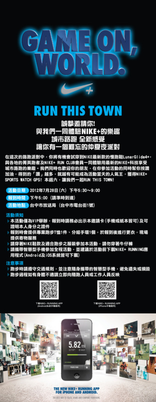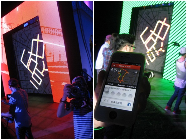 現場工作人員吃的用的穿的拍的彩排賣笑的,都已經開始慢慢動起來 活動主要是推廣「NIKE+ running something」應用程式,用跑步路線在街道畫圖騰 雖然麥兜恩還在用智障型手機,不過還好其他隊員的手機夠智慧,所以路跑紀錄不受影響