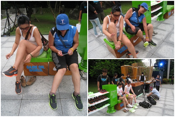 不久,同事Ray和Winnie兩個也一起加入挑鞋試穿的行列 當時我們開玩笑說,早知道穿拖鞋來,中途烙跑還能A走一雙四千多塊的NIKE跑鞋