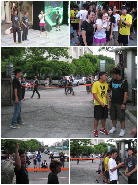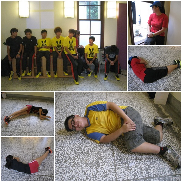 對面很專業的同學光靠鮮豔整齊的制服氣勢就很強大了 為了忠實呈現NIKE小勾勾精神,麥兜恩就奉獻出珍貴的CAS肉體仆街 可惜不夠筋開腰軟也沒法旋轉,所以沒勾好,反而讓隨隊志工攝影師小白先被我們操掛 ~大絕招~最後發現戶外有道具比較好勾,大家覺得這樣有比較NIKE一點嗎? 這姿勢ㄍㄧㄥ到我連表情都僵了,沒事應該多在家裡用身體抝一些字母來訓練柔軟度才對