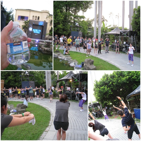 先拿好會場提供可以一手掌握的貼心小礦泉水,臨行前還有July老師帶大家跳暖身操 肉腳麥兜恩光前面這幾分鐘暖身操就流汗了,鬥志和體力大概也降了10% 感覺跟我去年日月潭泳渡下水餃前兩百公尺就覺得腳痠的情況,有異曲同工之妙