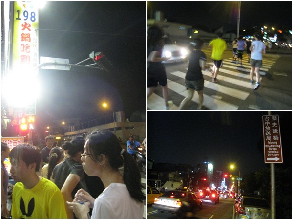 一行十餘人慢慢跑離台中體育場四周後,第一站到的地標是「中友百貨」 因為會遇到紅綠燈和車潮,所以或動或緩或停,未知的旅途沒有想像中那麼累 跟陪跑員跑著跑著,竟跑到我媽媽和我同學他媽的學校(俗稱母校)光復國小外操場 光復國小外操場位在台中公園的外圍,全長200公尺,剛好前幾天也在這練跑更值得紀念 倒是平常除了追公車外,很少急到像電影男女主角重逢需要在街上跑的經驗也算特別 而且最失算的是,我完全忘記我的傻瓜相機也是天黑就等於半殘,應該借台隨行好相機