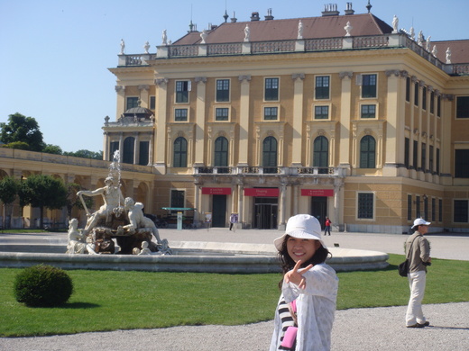 . 2011/06/11(六) . 今天我們有一個一日導遊~ . 從台灣嫁到這邊 . 講話都不用喘氣的~(超佩服) . 今天第一個目的地是「熊布朗宮」 . 超漂亮的宮殿 . 占地廣大又豪華 . 可惜裡面不能拍照 . 但我們有導遊解說 . 聽了很多的歷史故事~(超讚的) . 特別是瑪麗亞‧泰瑞莎女皇的故事 . 一段輝煌的人生 . 和丈夫相愛一生(真令人感動) . 聽說懷孕22次,生了16個,長大11個 . 不管哪個數字都很令人驚嘆XD . 參觀完裡面 . 當然外面也不能錯過 . 我們花了5歐元去搭小火車 . 環繞熊布朗宮的後花園 . 驚嘆以前皇族的奢華 . 如果時間更充足的話就好了 我們差一點錯過了集合的時間 . 嚇死人了(遲到可是要罰歐元的) . 下午我們來到了貝維第爾宮 . 又是一個不可思議的世界阿~~~ . 裡面比較印象深刻的 . 是希臘神話中人面獅身的斯芬克斯(原來是女的!!) . 就是問:什麼動物,早上四條腿,中午兩條腿,晚上三條腿?」的那個 . 聽說摸她的胸部會長智慧(真令人害羞) . 不過該摸的還是得摸吧XDD . 接下來我們來到了昨天來過的格拉本大街和史蒂芬廣場 . 不同的是今天有解說 . 進去了聖史蒂芬大教堂 . 哇~除了驚嘆還能說什麼 . 各色的彩繪玻璃讓教堂裡面看起來更加光彩奪目 . 大街上的黑死病紀念柱 . 也有其一定的意義存在 . 導遊說 . 宗教的數字都有一定的意義 . 像是1代表“上帝” . 3代表“三位一體”~聖父、聖子、聖靈 . 4代表“地”~四方 . 3+4=7代表“完美”~天與地 . 3X4=12代表12使徒 . 就像教堂也常以137為原則建造(高度、寬度…等) . 今天真的學到不少東西耶~~ . 晚上我們拉車到了 . 捷克的茲諾伊摩 . 旅館在很寧靜的小鎮中 . 剛好遇到了人家的婚禮 . 真是不錯的感覺 . 今天也是很精彩的一天 . . . 下面是我覺得介紹的不錯的部落格 . 給大家參考看看XD . 熊布朗宮 http://mypaper.pchome.com.tw/harvarddad/post/1321420697 瑪麗亞‧泰瑞莎女皇 http://mypaper.pchome.com.tw/harvarddad/post/1321450690 貝維第爾宮 http://blog.xuite.net/judy0715/juju/17598258 聖史蒂芬大教堂、格拉本大街 http://blog.yam.com/krantas/article/12269127