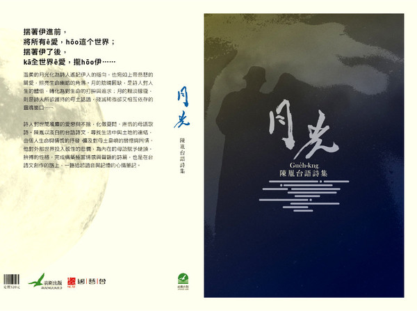 天氣變涼冷矣,窗外ê北風kā我講,我ê額頭koh加一寡仔皺痕矣,有ê頭鬃嘛變做霜雪,恬恬落tī一个孤單ê暗暝,時間毋知是多情抑是無情,總是無聲無說行過,行過春夏秋冬ê跤phāng,行過美麗ê山河,行過無伊形影gāng-gāng ê目神……啊,眼前是開闊ê海,海湧一波一波,淹過來,又koh一波一波,退落去,起起落落,就按呢,日子咻一下飛去天邊海角矣。 目一下nih,《戀歌》出世初版,已經兩冬外矣,伊ê影跡嘛愈來愈薄矣,親像雲煙消散hiah-nī輕,hiah-nī軟絲,毋過,有一屑仔未結phí ê傷痕,猶tī夢中teh牽絲,khah早講bē出喙ê話,有時雄雄suah peh起來嚨喉探頭,總是小可ngiau-ngiau,哽tī半空中,吞bē落,koh吐bē出來,真害咧,定定著愛姑情一杯燒酒,才有法度kā痛疼化做歌詩,啊!伊百面tī遠遠ê所在,學月娘teh笑我,笑我這个戇大呆。 哈,我定著知影風ê詭計,老罔老koh會哺塗豆,這款低路ê戲齣,哪有法度騙倒我這隻老狐狸咧?這就是中古車ê好處,路邊tshìn彩插咧,無煩無惱,毋驚風雨thún踏。毋過,思念絕對是真ê,戀歌,永遠唱bē煞,只是伊,已經毋是原來ê伊矣,現此時,成做暗暝一粒美麗ê天星,tī眾神慈悲ê眼內,teh看我,等我。你知影,我早早就和家己ê青春少年有約束:揣著伊進前,將所有ê愛,hōo這个世界;揣著伊了後,kā全世界ê愛,攏hōo伊……啊,逐擺,若看著月光hiah-nī溫柔,koh無私心,沓沓仔照光每一條烏暗ê小路,我都感動kah目屎流目屎滴。這kám是上帝ê目睭? 性命本底是無圓滿ê,就是因為有欠缺,咱才有拍拚ê理由,這一兩冬,tī眾人鄙相看衰ê眼神內面,我看著一寡母語ê皮肉又koh死去矣,毋過,另外一寡靈魂卻tī我ê心底復生,生死之間,留落來ê跤跡印記,攏是我硬頸ê歌詩,假使有一工,咱可憐ê母語若正式入土,遮,hōo我祝福過、唸讀過ê詩,就是世間上媠ê墓牌…… 是講,這本《月光》,其實毋是正港ê月光,是我對世間風塵ê愛戀kap毋甘,種種ê掛礙,若親像心肝頭海湧ê起落,不時淹過目墘,憂悶當咧無法度接載ê時,詩,是一種消解ê步數niā-niā,每一个寂寞ê暗暝,一杯燒酒落喉了後,我攏會泡一鈷薄薄ê燒茶,恬恬點一葩電火,慢慢仔,雙跤交疊坐落來,安安靜靜,tī榻榻米享受一个人ê孤單,hit時才知,每一下喘氣,攏是神ê恩賜,kap關愛。 世間變涼冷矣,我ê心,當咧燒烙。這是月娘教阮ê步數……tī遠遠ê伊,kám知影我ê心意?