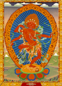 咕嚕咕咧佛母略述 噶陀仁珍千寶六世˙貝瑪旺晴仁波切 開示 2004年於妙乘法苑 金剛弟子 桑傑措吉 擷錄彙整 咕嚕咕咧佛母又稱為「作明佛母」,在漢譯經典中則譯為「酤羅菩薩」,為佛教密宗掌管權威的本尊,攝十方最殊勝本尊之一,具足大悲密空的大威力至尊,功德遍攝三界自在任運,所作皆能成就,故又稱「三界自在空行母」或稱「懷柔佛母」。其功德廣大勝深,實是無以比量。 咕嚕咕咧略述及傳承 咕嚕咕咧佛母、密慧佛母、紅度母這些都是一樣。像片中本尊的頂上有阿彌陀佛,她是阿彌陀佛的化現,貢塘大師的讚頌文內也是說到:「作明佛母是阿彌陀佛的化現。」 此部續從那裏出來?因為是秘密的,因此沒有完整的續。如喜金剛續內說到一點點怎麼修持作明佛母的部份,將續文的前面、後面、上下接續起來,就是完整的作明佛母修持的法門。 在覺囊派多羅納塔大師傳承的【度母瑜伽續】(有兩部續,為瑜伽上續和下續。)裏面都提到:要攝受一切眾生,即修咕嚕咕咧佛母。也說到簡單的一些修持,但就分佈在續內的上、下部份,在中間插入其它的法門,沒有直接說出。 因此西藏整部直接修、完整有口訣的就是哇日洛札巴大師的傳承,唸誦、修持、事業三部份都很完整,由他傳到薩迦派。 作明佛母的傳承,我們的傳承有兩支,一為今年薩迦圓滿宮達欽法王到妙乘法苑親傳,一為二千零四年黃教(格魯巴)朗加仁波切在新加坡萬佛林灌頂的傳承,兩者都非常殊勝。 作明佛母的功德 如以虔誠心修持,帶給一切眾生歡喜、人緣佳、諸般事業易成,具足權威勢,受部屬、親友愛載,聰慧、世間諸法的學習迅速,可得天人福報。於佛法的聞思修、唸經、唸咒、打座等因心不自在而放逸、不專心等過失能漸消而專注,不自在的心能轉化、惡念轉為善念,這是外在的功德。 內在的功德為增長智慧、福德,一生親見作明佛母,獲得共通的八成就等。 凡一切有情應感恩此佛母之大悲種性,此法不僅速應且懷柔六道眾生、利益解脫輪迴,成就本性懷愛的大圓滿。作明佛母法門以先獲得共通的成就後,再獲得不共通的成就、不共通成就自然而來。作明佛母內,咒數和母續特別的三昧耶戒最重要。這就是她的功德。 咕嚕咕列佛母心咒:嗡 咕嚕咕列 舍利 梭哈→FOXY可以搜尋下載。 |