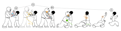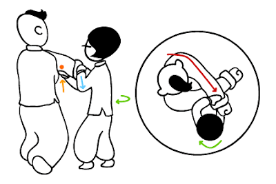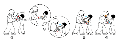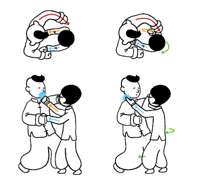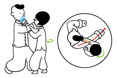 所以當四喜自以為力大勝妙問緊抓妙問雙手,同時向己身拉時,此時妙問只需將肘部微微抬起,便可破解四喜死纏亂抓的招數。