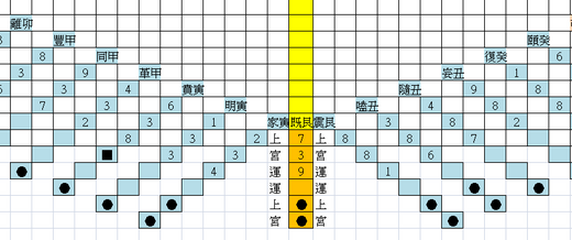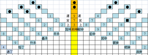 坤卦向乾卦之卦氣、卦運、卦宮分佈圖