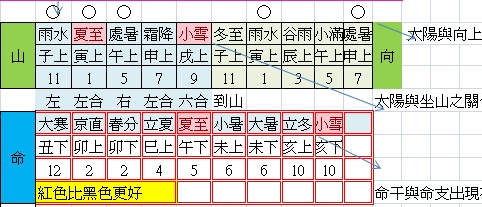 氣裡,能同時照命與坐山或向者機率非常低。也只有夏至與小雪
