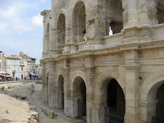Day 這天一早,很努力的醒來,前晚參觀莊園參觀的很晚,很疲憊,但是仍然要早起。在出發前,仍有時間可以好好的欣賞莊園的早晨,真的是個很大的莊園。參觀完莊園後,前往阿爾勒。 高爾夫球場 早餐的地點 昨晚的噴泉 很大的莊園吧 應該是以前的廚房吧 還有湖ㄟ 有湖有河真美 房號 屋裡的樓梯 梵谷在阿爾勒呆了很長的時間,名畫的真實地點,仍舊保存著讓遊客們參觀。旁邊放著梵谷的畫,好讓遊客清楚的知道是哪幅畫。 這裡交通不太方便,還好是跟團,不然自由行不開車則很難到達。 隨後前往競技場,古羅馬人很愛競技場的。 競技場旁,有梵谷畫的咖啡館 真實的咖啡館 競技場外 競技場內 競技場地 猛獸就是從這裡走出去的 競技場內所見的城鎮 競技場旁有梵谷的博物館,但是我們真的很累,不想進去參觀。 梵谷博物館 午餐的餐廳 中午用餐過後,我們前往梵谷一生最痛苦的時候所待的療養院。療養院看起來,真的很不舒服,看起來像個監獄,很是悲傷。於是,我沒有想要拍太多相片,只想對我所喜愛的梵谷表達敬意。 我記得上次參觀梵谷的作品,梵谷生前的作品沒人要買,死後沒人買的起。真是一場藝術家的浩劫。 離開傷心的梵谷療養院,我們前往卡爾卡頌雙城古堡。 這個古堡很有趣,圓圓的,是還圓圓的一個城鎮,走到哪,都知道這個城鎮是圓形狀的,如同競技場裡圓形的壁。 很棒的城堡 晚餐的餐廳 結束後我們前往帕沛尼翁,晚上住在帕沛尼翁,說真的,但我不喜歡這間飯店。 旅館拍出去的景色, 但是真的很疲累, 無法好好欣賞 |