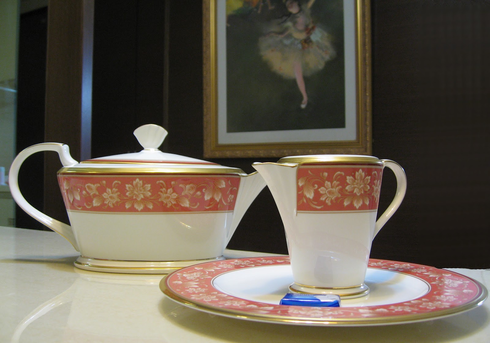 昨天終於買了一直很想買的noritake茶壺+奶盅+點心盤![]() 上次去買因為只有代店店員,摸不著頭緒而做罷。這次想說,若是同樣情況發生,我們就放棄。但是從一進三越開始,一切就挺順利的,我就知道買得成了。這次只有等了專櫃姐姐一下下,旁間的專櫃幫我們打了她的電話,說她在電梯應該馬上就到,果然一下下她就出現了。我們看了看茶壺,檢查一下沒有太大問題就買了。買好後,請專櫃姐姐打包,我們等打包好,再去拿 。新光三越有滿3000送200,6000也是送200是沒有累計的。但是DM跟簡訊上都沒有說清楚,真糟糕的宣傳 。很像油燈吧