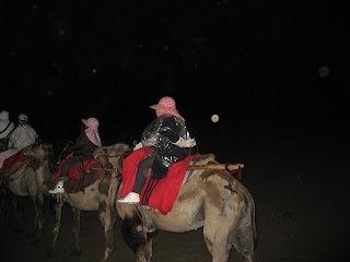 夜間中搭乘駱駝行走