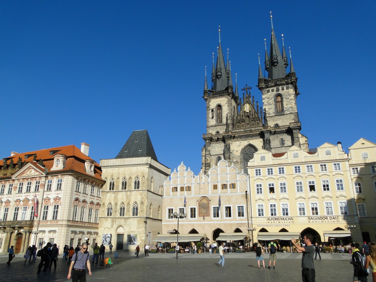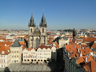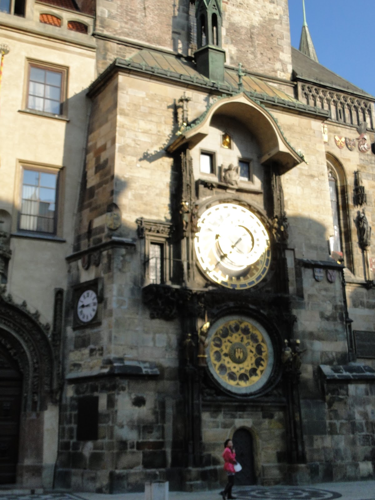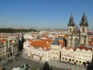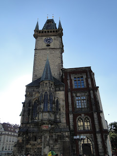 用完餐後,回到飯店放物品,接下來則走路至舊城區,舊城區由火藥鐘樓開始,黑黑的鐘樓,很有火藥庫的感覺。再繼續徒步至舊城廣場,從舊城廣場就可以看到市政廳的天文鐘,天文鐘妙訣之處就是一個鐘裡,有四季,12星座,12時辰,還有地球,太陽,月亮間的軌道。真是個奇妙的鐘。