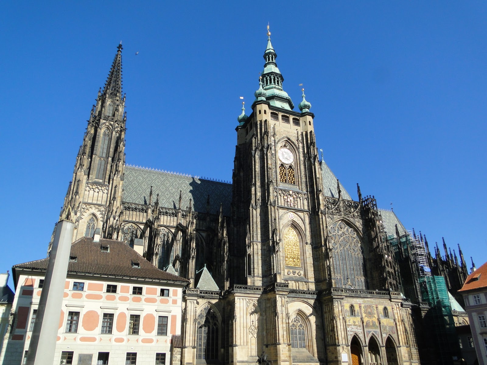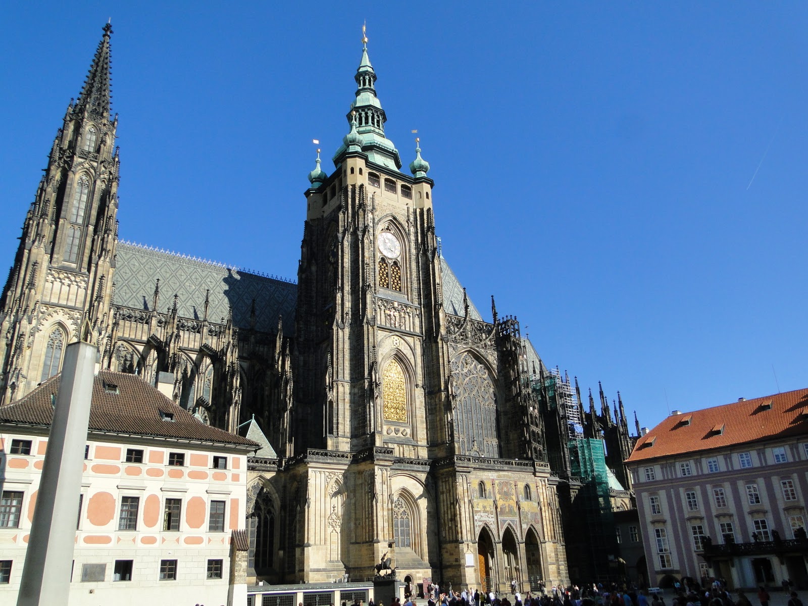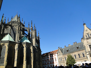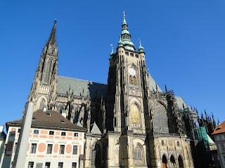 一早由飯店前往捷克布拉格聖維特大教堂,參觀慕夏的所設計的彩繪玻璃,以及舊皇宮,還有僅僅20分鐘的黃金小巷。我對捷克不是很熟析,因為歷史使然,大部份的歷史僅僅記錄強盛者的歷史,對於微弱的國家,不是有很深厚的記載。這天氣候非常炎熱,應該說,歐洲這趟異常嚴熱,已經是10月天了,可是仍然酷熱,依然要防止曬傷。