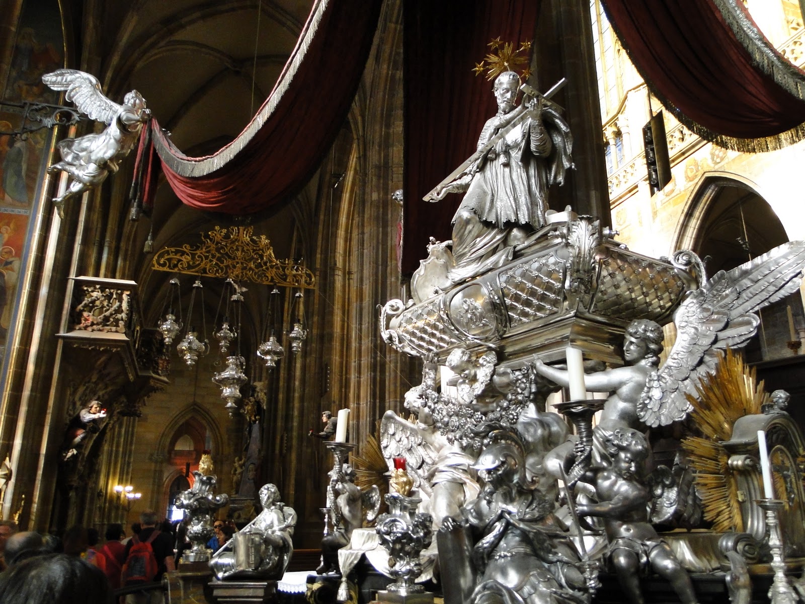教堂美,但是並沒有美的不可言喻,裡面的物品,確實相對很有價值,很少見到純銀所打造的棺木,天使。而彩繪玻璃,就是教堂裡最重要景點之一。