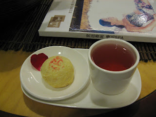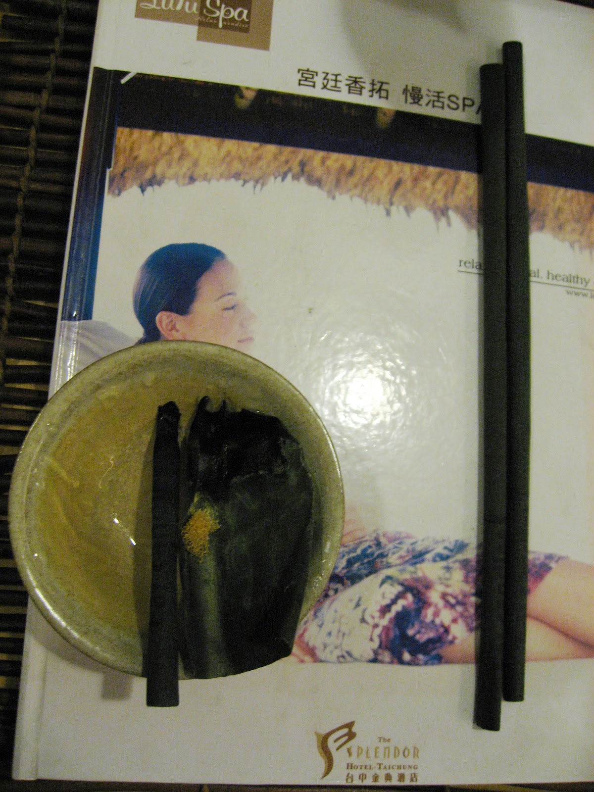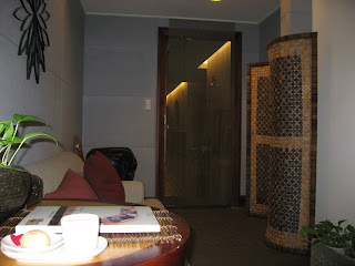 星期六要住台中金典 之前去過一次LuLu Spa,感覺很棒。這次去..................因為已經搬到15F,跟以前差了很多很多...............以後可能不會再考慮去了。 現在的更衣室是跟俱樂部一塊兒share的 從裡面往進門處拍,進門處在相片左側。 更衣室的衣櫃 Spa的床,跟以前差好多啊,房間也僅僅剩下不到當初的1/10 旁邊就是放保養品的小櫃子 特地請老師幫我留下的,說這是耳卆(ㄗㄨˊ),去除耳內的水分,讓內部壓力平衡。來自印度。 右邊的就是耳卆原本的長度,經由在耳朵內燃燒後就變短(左)了。燃燒時會聽到噼噼啵啵的聲音,不會痛也不太癢。 老師把耳卆撕開讓我拍 做完Spa後,從小走廊拍Spa的門口 做完Spa後的小點