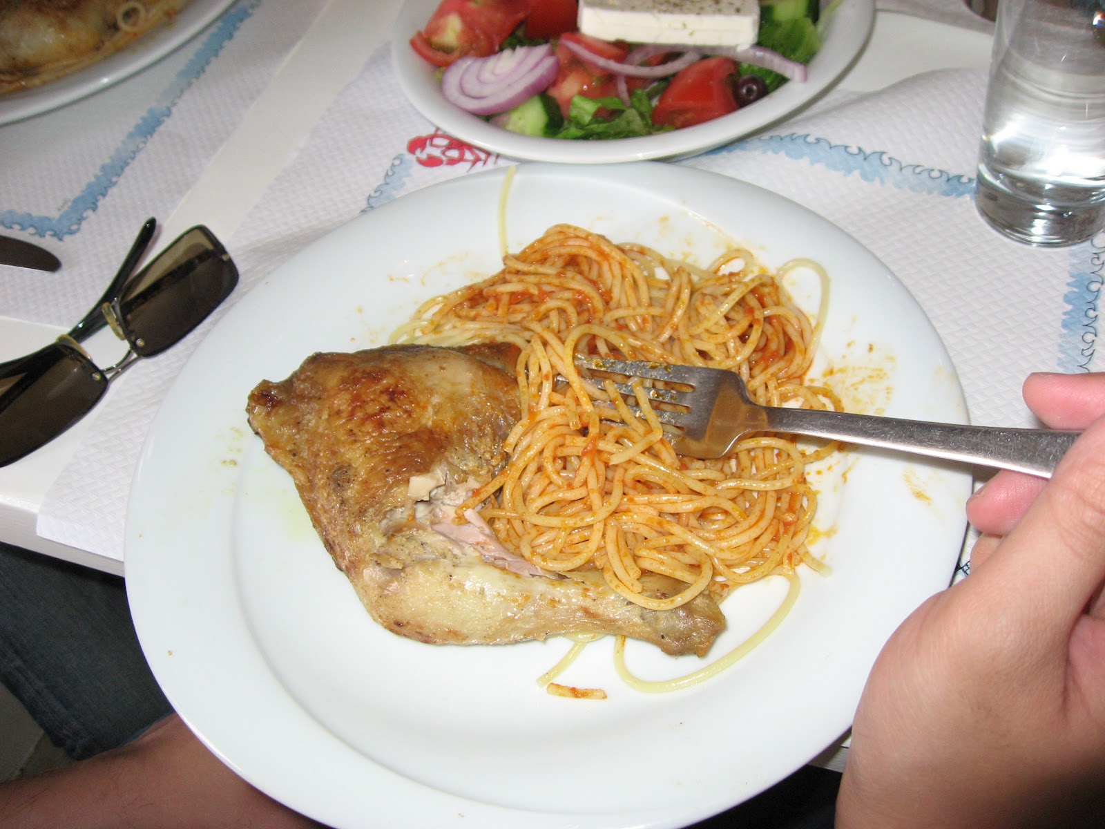他們吃雞腿義大利麵