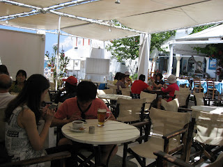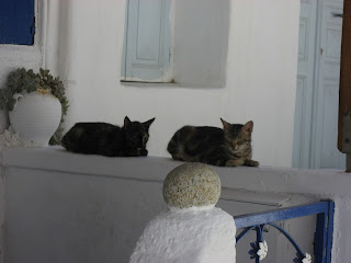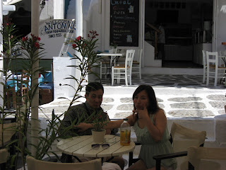 希臘之旅 Day 5 米克諾斯島--> 聖托里尼(前篇) 自拍婚紗照結束後,換好裝,整理好行囊,交給櫃檯就往市區移動 昨天沒有看到,今天很醒目的帆船,大家都覺得好像是電影裡的船 慢慢移動 希臘很多貓咪 也很多像這樣小街道 白天晚上很不一樣的風光 白天看起來很清純 婉上看起來很動人 同團蜜月的友人 這對夫妻看起來超級年輕 我們的蜜月好友 很熱鬧的三人組 這杯茶,很晚很晚才到,而且少了一塊餅乾 東西一直都沒上全 一下少餐具 一下少調味料 別桌都吃完了 我們的東西還沒上齊 所以我不開心了 連貓咪都不理 吃完就去買明信片寄明信片 至今還沒收到 逛累了,回飯店等大家一起 沒想到,大家都已經回飯店了 藍天碧海的 這樣拍腳好長喔 真的看起來好長,明明人就蠻短的 掰掰,米克諾斯 |