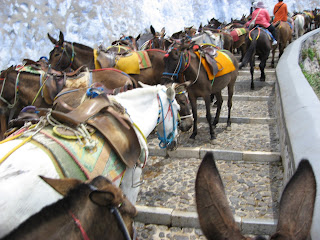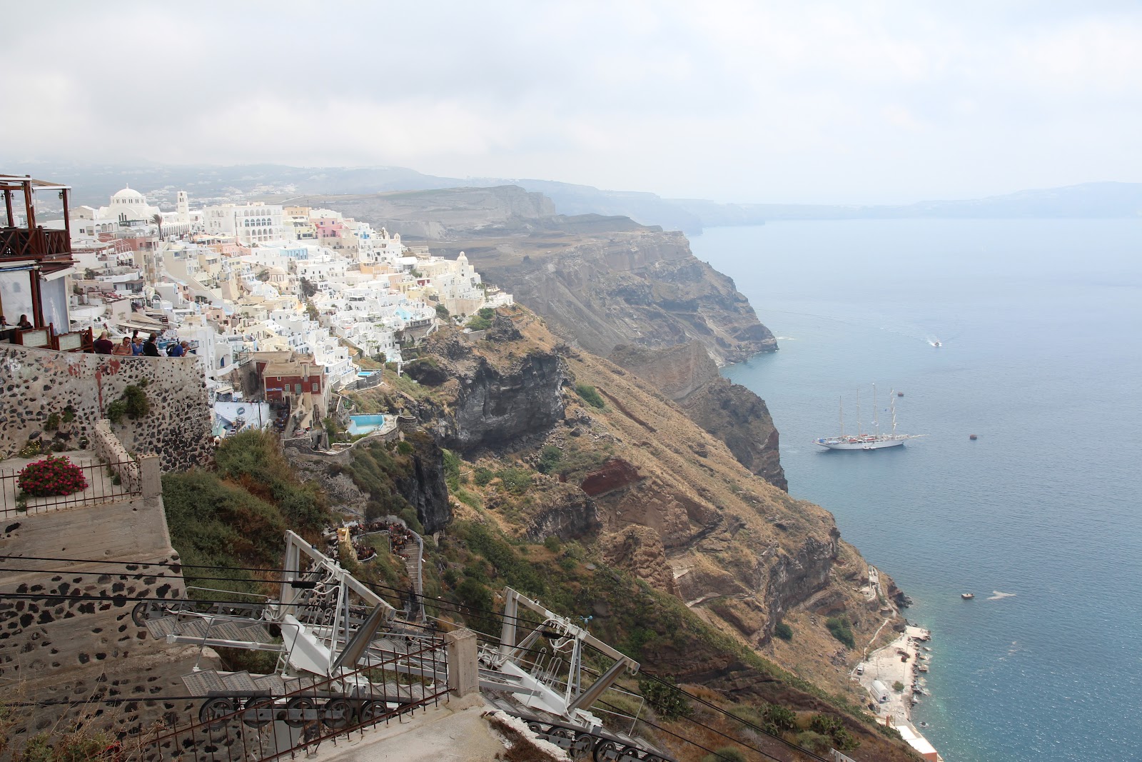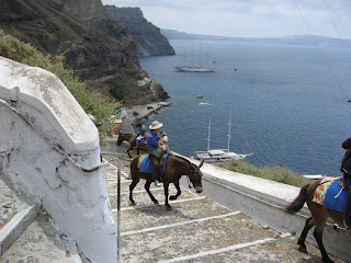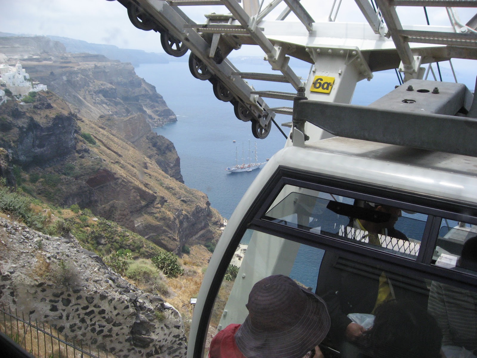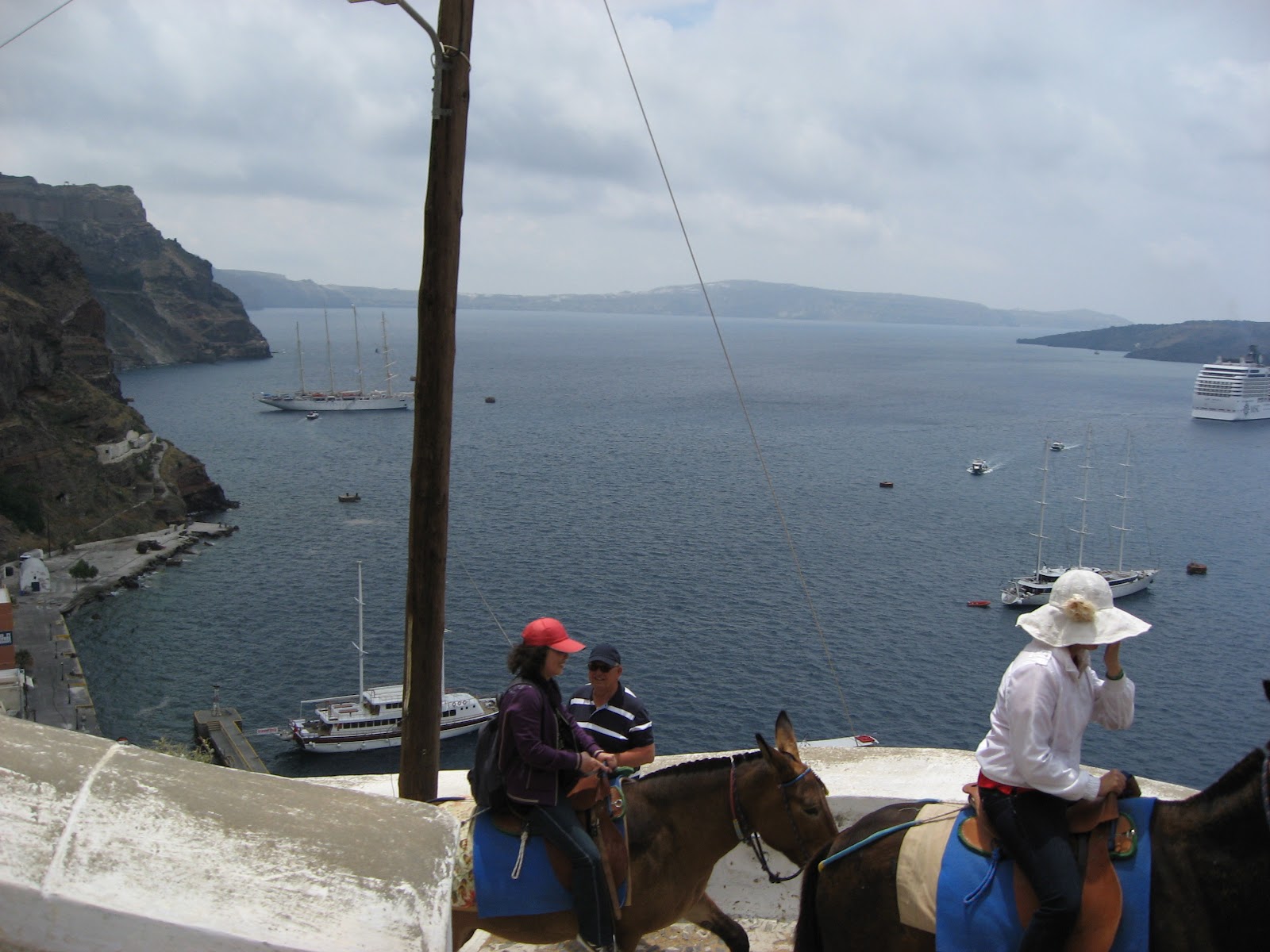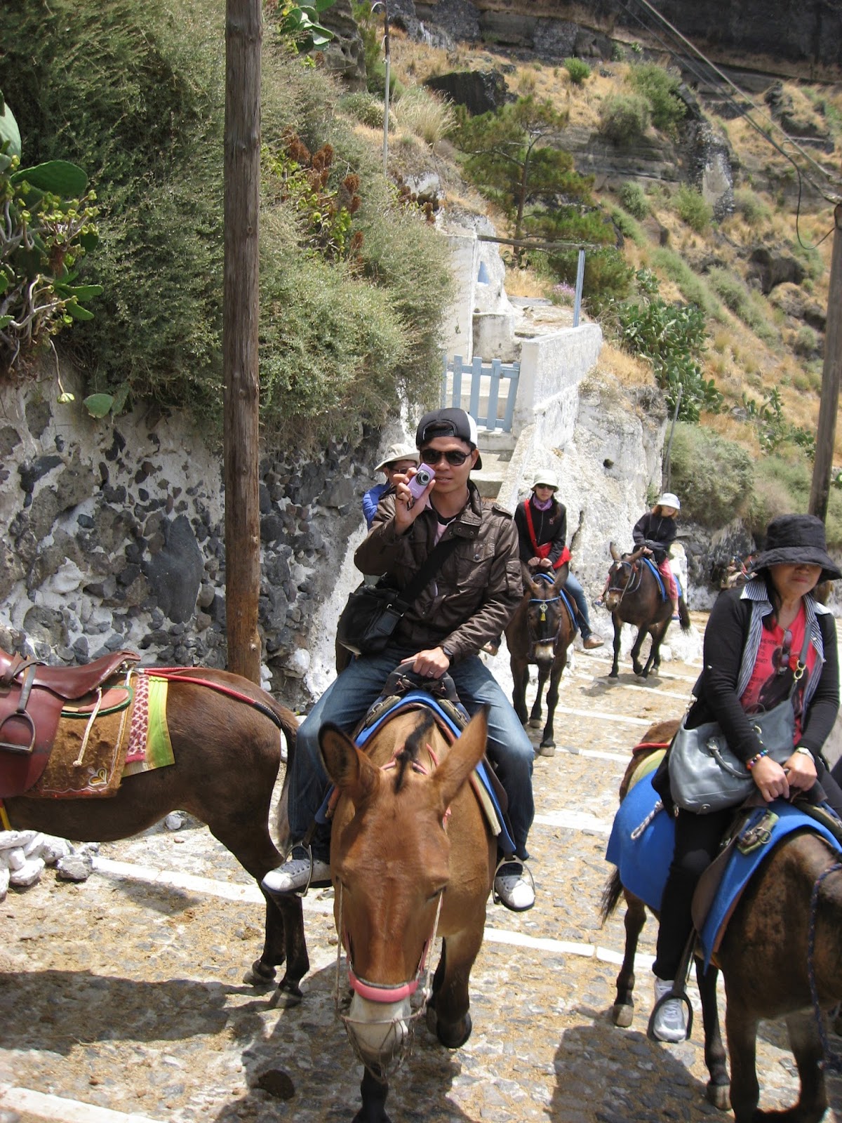 今天一早很早起的沒有用早餐,就去採買紀念品,給家人給同事給好朋友的紀念品。 接近中午約定的時間,領隊就帶大家去搭纜車了。 纜車6人一台 纜車俯瞰的景色 抵達後,眼前是一片汪洋大海,大海上的船(很像小海盜船) 要準備去騎驢子了 騎上驢子,大家只能自拍或幫別人拍 驢子集散地 騎完驢子後,要前往藍頂