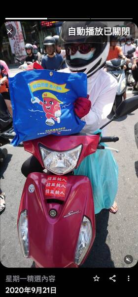 張先生在路上看到有捐血人貼在機車的貼紙,高興得拍照留念,是個極具赤子之心的人。 以下照片由張燦鴻提供