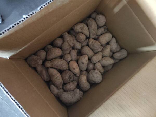 我收的這一箱,如上,以郵局紙箱寄來的。 然後,上網查了一下「毛地瓜」,發現介紹的資料、影片不少,真好玩。 轉眼就過一個月了,我家已順利吃光光了,再等明年才能享用這奇特的美好食材 之滋味了。 https://www.agriharvest.tw/archives/105176 https://news.ltn.com.tw/news/life/breakingnews/4693659 影片 https://www.youtube.com/watch?v=-Kx6kgYbiTQ
