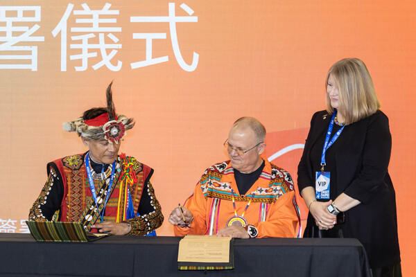 全球正積極尋找氣候變遷解方,而 AI 結合永續發展的應用也成為全球重大課題。臺灣原住民族因地理環境限制,面臨氣候風險更高、挑戰更多。 根據 MDPI 研究,自 2006 年至 2020 年,臺灣共發生 384 次極端氣候事件,其中約 43.2% 直接衝擊原住民族社區。特別是 0403 大地震後形成的馬太鞍堰塞湖,於 2025 年 9 月潰堤,重創花蓮光復鄉;春季降雨偏少、水庫蓄水率降至 10% 以下,也導致農作物受阻、傳統生產體系受損。 在環境挑戰迫切之際,今日(2025 年 11 月 20 日),台灣原住民淨零永續發展協會(TISDA)與加拿大6D AI模擬科技公司RUNWITHIT Synthetics(RWI)於「2025 Meet Taipei 創新創業嘉年華」活動中,簽署合作備忘錄。 這項合作為IPETCA協定生效後成員國間完成的首個國際原住民族科技合作案,象徵臺灣與加拿大在原民科技、文化、防災與永續領域開啟跨國合作新篇章。 活動以排灣族金曲歌手桑梅絹(Seredew)的古調祝禱揭幕,象徵文化傳承與國際連結。 RWI 科技長 Dean Bittner 與執行長 Myrna Bittner,加拿大駐台北貿易辦事處代表何曼麗(Marie-Louise Hannan),原住民族委員會經濟發展處處長王瑞盈,以及立法委員伍麗華(Saidhai Tahovecahe)等貴賓均出席並共同見證。 全體大合照(上圖),下圖是簽署合作備忘錄 連結太平洋原住民族的國際創新橋樑本次合作在 IPETCA 框架下進行。IPETCA(Indigenous Peoples Economic and Trade Cooperation Arrangement)由加拿大、澳洲、紐西蘭與中華台北共同建立,旨在連結太平洋兩岸原住民族,讓社群能在全球永續、貿易與科技浪潮中積極參與並引領變革。 TISDA 與 RWI 的合作為 IPETCA 成員國間首個原住民族 AI 科技合作案,象徵臺灣原住民族將以更高國際能見度參與永續議題,並透過跨國連結實現共享與互助。本案亦獲加拿大駐台北貿易辦事處(CTOT)支持,預計成為 IPETCA 框架下的示範案例。