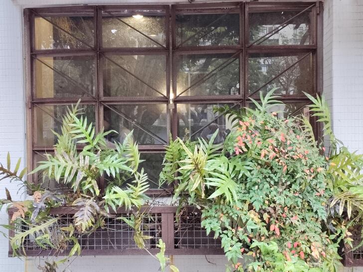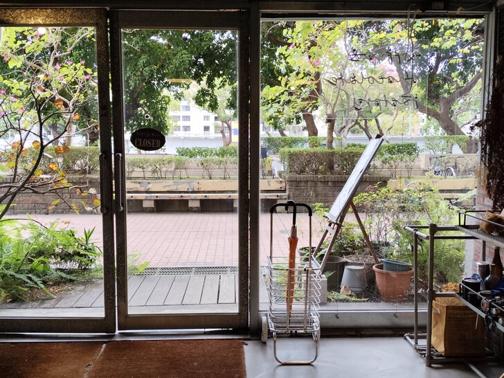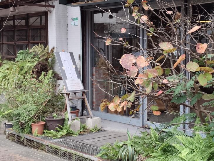 位於住宅大樓社區的一樓,門口不少植物,招牌也看得出有些年紀了。