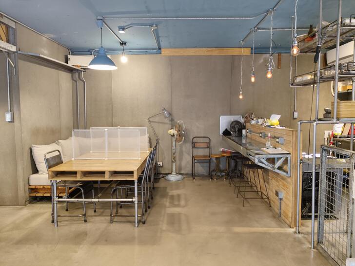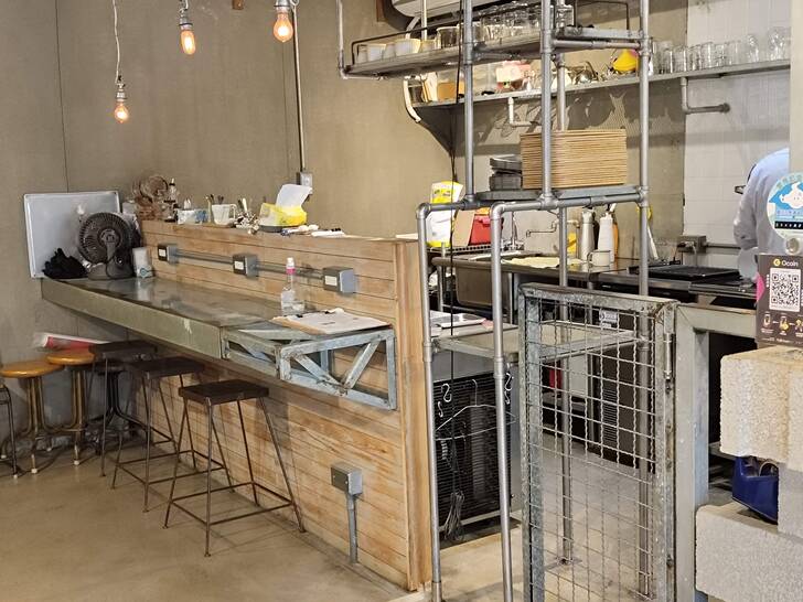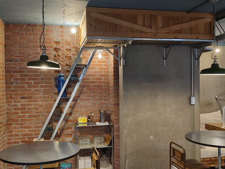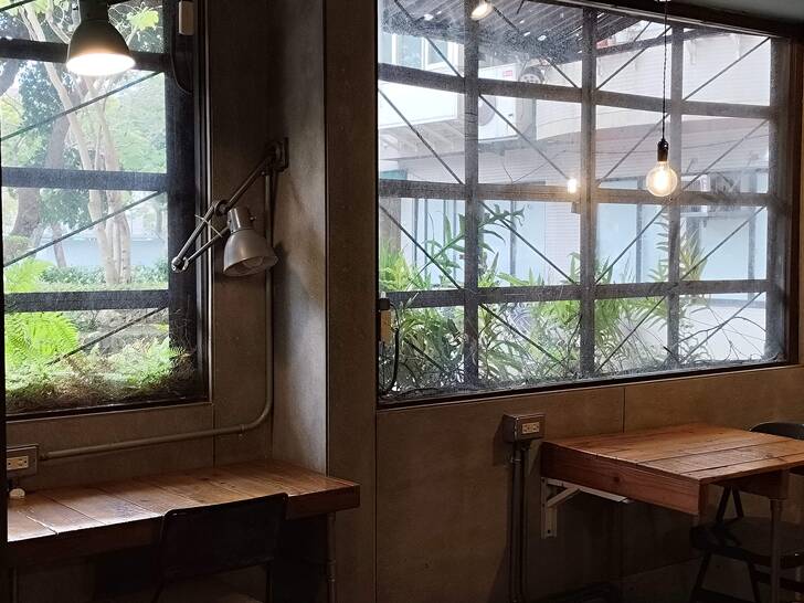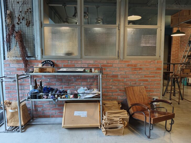 磚牆、管線、桌椅都經過設計,還用上了鋁製的梯子、架子、水泥磚等等來佈置,搭配燈光、乾燥植物點綴,很有味道,氛圍滿點。