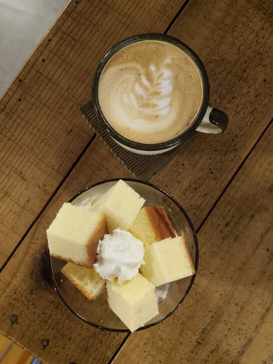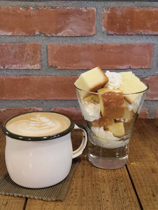 我在點餐時,不加思索的就選了美式咖啡,沒想到這家竟然沒有這個品項,所以我就選了拿鐵,甜點則是選了磅蛋糕。