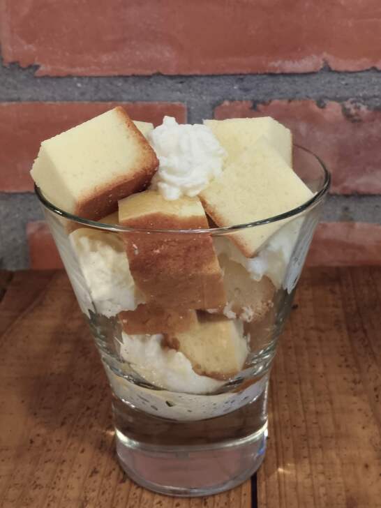 磅蛋糕是切成小方塊,方便入口,加了奶油放在玻璃杯中,確實也是顛覆我的想像。當天剛好店內播放的都是爵士音樂,西洋老歌用不同的手法加以詮釋,旋律略有不同,節奏也異於原曲,老歌摻入新意,另有一番風味。