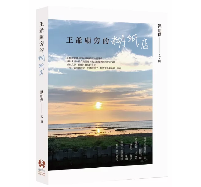 《王爺廟旁的糊紙店》,是新書的書名。書中文章有兩種,一為25篇的短文,是對事物一時的感想與記錄。就像手持相機,看見讓人驚豔的畫面,即刻按下快門,享受那美好的一刻。除了照片,並附上四、五百字的說明。像一種日常生活的調劑及紀實,給平靜無波的日子帶來漣漪及愉悅。有一回,在小金門西方社區廟宇的角落,見到一尊袖珍風獅爺。故鄉風獅爺至少有數十尊,而這尊僅有幾十公分高,如此小的體型極為少見。又在山西村一棟大厝旁,見到以衣架模特兒當作稻草人來驅趕鳥兒,照顧屋旁小菜園的有趣畫面。在義大利旅行不期而遇那布勒斯一家餐廳的侍者,高歌義大利民謠「散塔露西亞」的迷人歌聲。於東京適值農曆新年,街頭見一些住家在門楣上放置草繩編成的飾物或插松樹枝來辟邪,與我們新年貼大紅春聯的迎春接福有異曲同工之妙。葡萄牙大西洋邊的洛卡岬,號稱為歐洲大陸最西端的陸地,站在懸崖邊,望著大西洋,讓人感受汪洋萬頃的波瀾壯闊,這些瞬間攝取的畫面都是我熱愛的。 另一部分為每篇為一千兩百多字的文章,共有五十篇。其一,為返台及回到故鄉金門的所見所思所感,有回憶昔日種種,有感嘆時光飛逝,有感慨景物變遷,可謂滄海桑田世事多變。也有台灣以及故鄉的四處遊覽。其二,為各地旅遊的感想與心得,曾參觀兩處心儀已久的美術館,觀賞熟知藝術大師的作品。又實際體驗威尼斯的貢多拉(Gondola),一種首尾兩頭上翹的平底船。在布拉格聖彼得與聖保羅大教堂,憑弔音樂家德佛札克的墓園。探訪布拉格查理大橋、伏塔瓦河及高聳的教堂。造訪龐貝古城,像打開一座羅馬時代古城的時光膠囊,認識了那個年代的生活面貌,而維蘇威火山仍屹立咫尺。其三,為旅居溫哥華的生活記錄,加拿大地廣人稀自然資源豐富,享受大自然是此地生活的必要,這些篇章試著記載與大自然互動的種種。其四,面對疫情的回應,持續兩年多的疫情,至今仍沒有止息的傾向,對全球的傷害影響巨大。試著對疫情作片語隻字記述。 我熱愛文學與藝術,一直以來,喜歡在文藝裡追逐探險,而文藝對我不薄,毫不吝惜回報以驚喜及收穫。無疑的,《王爺廟旁的糊紙店》書裡的所有篇章,又是一次我馳騁於文學世界的探索過程。記得多年前寫部落格,入圍「全球華文部落格大獎」需回應一篇感言。當時我的回覆是「無意中加入城邦部落格,這一年多來,我像回到童年般喜樂戲耍的日子,在一望無垠的沙灘上,拎著小桶拿著小鏟,挖著沙子撿拾貝殼。在城邦部落格蘊藏豐富的沙灘上,我赤足沁著清涼的海水,經常挖到優美的詩篇、雋永的文字、美麗的圖片、迷人的旅遊等。過程中,我獲得無數亮麗璀璨的貝殼,且常有意料之外的驚喜。」透露出我喜歡於文藝沙灘上撿拾尋覓貝殼的心意。 可以說,文學與藝術就像是我生活中的雙翼,引領我的想像翱翔於無邊無際的天地。雖然,沒有傲人的成就可言,但其過程令我感到富足與快樂。