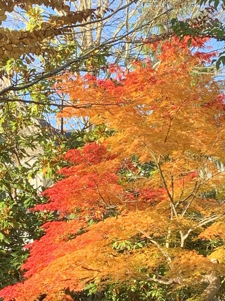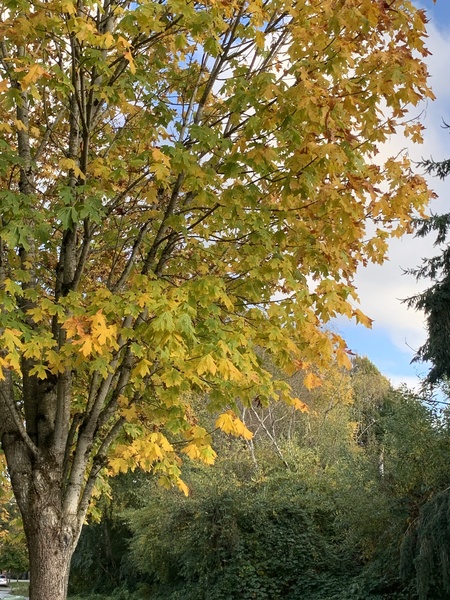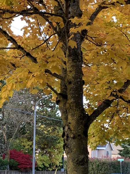 近日,氣溫明顯下降,最低溫有時來到四、五度。會變顏色的樹葉,已經開始變色了,有些葉子則掉落滿地。走在路上,看見如此繽紛亮麗的色彩,不覺取出手機拍下這美麗的瞬間。