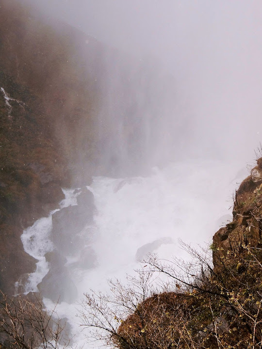 華嚴瀑中段有所謂十二小瀑,隱身迷濛霧氣,看不清楚