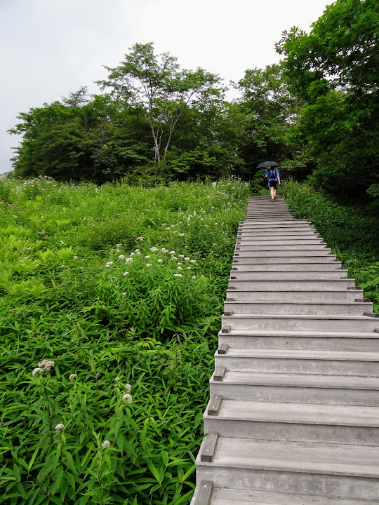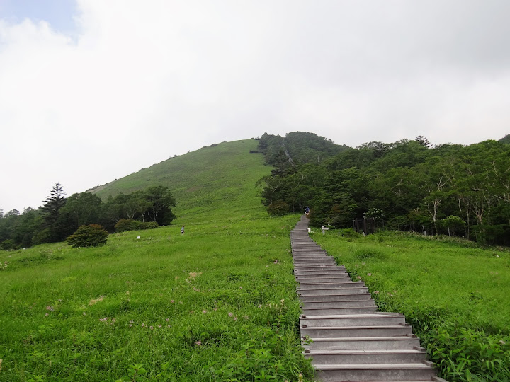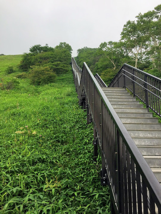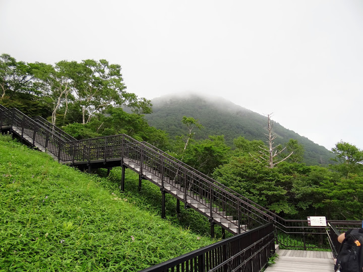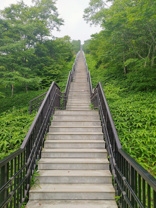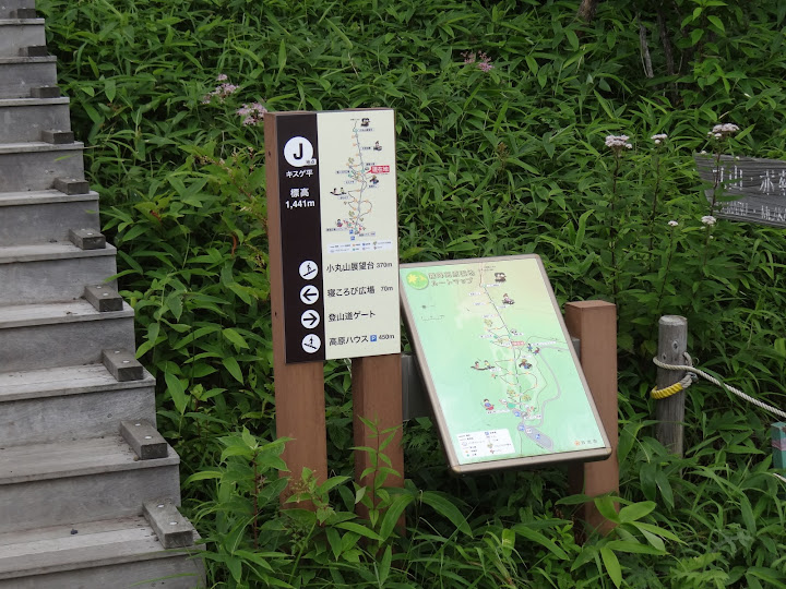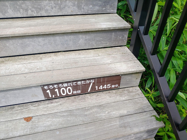 步道起點,里程碑A,海拔1345米 小丸山展望台,里程碑R,海拔1582米 台階1445級 起步有點陡,但坡道不長,真正考驗在後頭